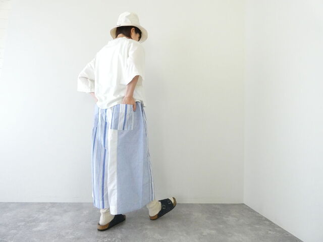 C生地とD生地は共通の縦糸で横糸を変えてボーダー生地を作り、横に使うことでストライプにしています。