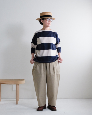 7分袖で仕上げたボートネックリラックス。