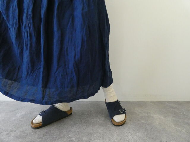 深みのあるインディゴカラーが印象的な、やわらかな雰囲気のギャザースカート。