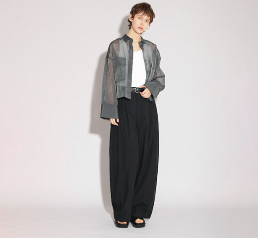 独自の視点から時代の空気をとらえ、ON/OFF、TENSION/RELAX、WOMEN/MEN など、反する要素のミックス感をマテリアルや独特のカッティング、ドレープでつくりあげ、しなやかで自由な女性像を表現します。