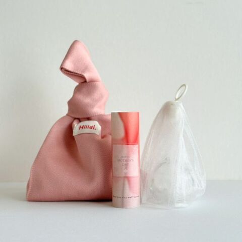 いつもの生せっけんとは少し違う、母の日だけの特別な装い。ニットバッグを開けたあとに、お花を受け取ったような華やかさが続くように。生せっけんは、母の日限定デザインのスリーブ(紙筒)でくるみお届けいたします。