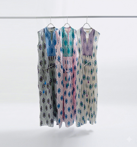 ポジティブなムードを纏い、日常を豊かな気分で過ごすための服。インドでテキスタイルからつくり、刺繍やプリント、伝統のクラフト感と都会的なモダンの融合。日々を大いに楽しむ女性たちに向けて、日常に高揚感をもたらす「OrdinaryHappiness」を提案します。