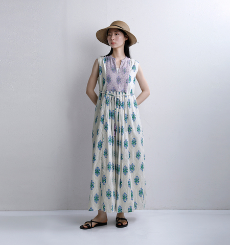 ne Quittez pas(ヌキテパ)より、コットンジャガードイベリスプリント刺繍スリーブレスドレス Cotton Jacquard Iberis print Embroidery Sleeveless Dress をご紹介します。