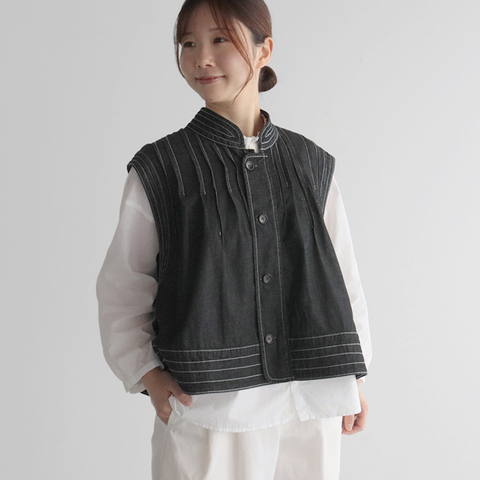 STAMP AND DIARY|フレンチリネン ドルマンショートベスト