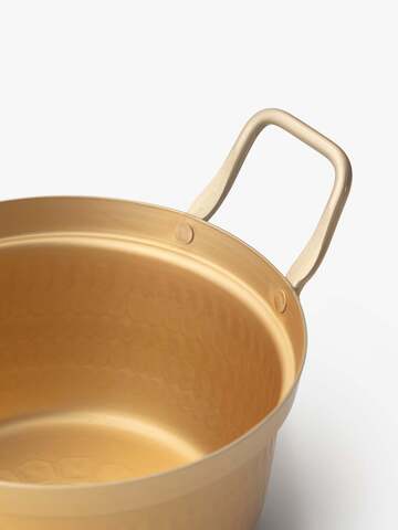 まるっとしたフォルムに、やわらかな金色の小鍋です。