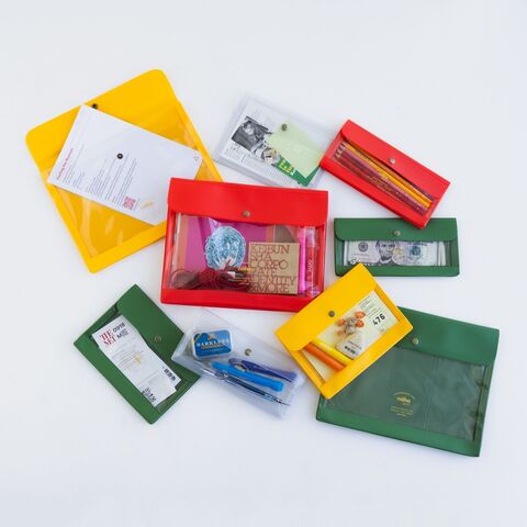 軽くて丈夫なPVC素材は、水濡れや汚れに強く、薄いながらもマチがあるので厚みのあるものも一緒に保管できます。