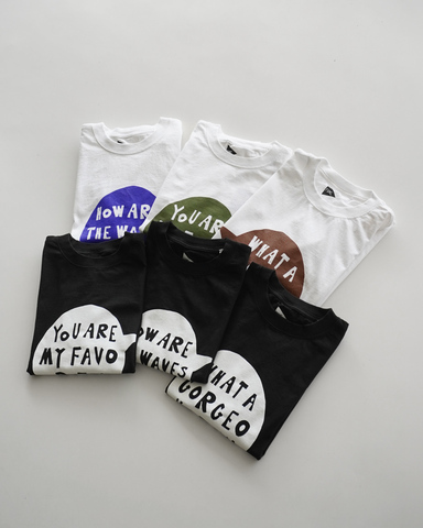 サーフカルチャーを感じさせるメッセージプリントが、スタイリングに程よい遊び心を添えます。