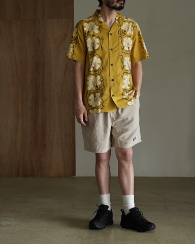 気温の高い日でも心地よく過ごせる、軽やかな着用感が魅力の半袖シャツ。風通しの良いオーガニックコットン素材を採用し、肌離れの良さとナチュラルな風合いを両立しています。