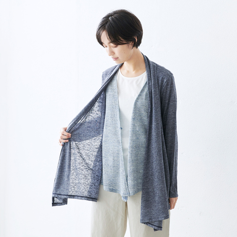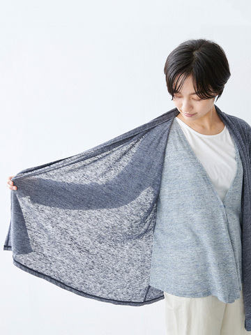 リネン100%の織物はよく見かけますが、糸切れしやすく編み立てるのが難しいリネンを、他の素材を交ぜる事なく、和歌山のメリヤス工場でゆっくりと丁寧に編み立ててつくりあげたカットソー素材(編み物)のプレミアムリネン®。リネンならではの、さらりとした風合いで、素肌に着ると非常に心地よい。また、吸放湿性に優れているので、汗をかいても爽やかさを持続。風通しもよく真夏でも蒸れにくく非常に涼しく着ていただけます。「着て」「洗濯」を繰り返す度に、風合いも柔らかく馴染んでいきます。そんなプレミアムリネン®を是非お試しください。