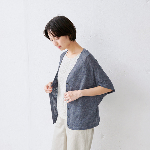 TOKYO BASIC|プレミアムリネン100% 半袖 Vネック カーディガン|リネンカーディガン