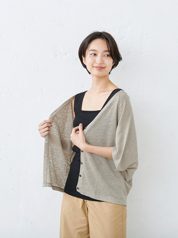 プレミアムリネンを使用した、暑い季節もさらりと涼やかで、体型カバーも叶えるカーディガン。