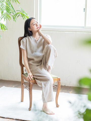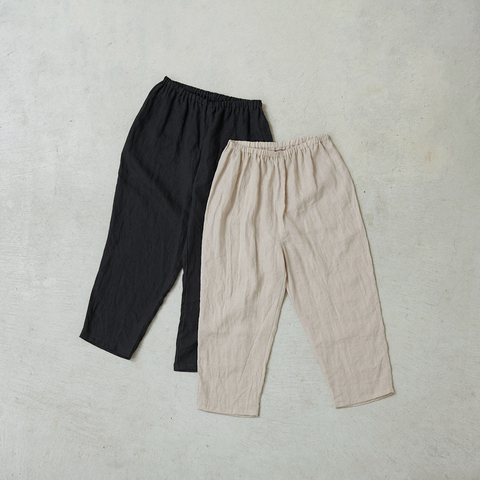リネン100%の織物はよく見かけますが、糸切れしやすく編み立てるのが難しいリネンを、他の素材を交ぜる事なく、和歌山のメリヤス工場でゆっくりと丁寧に編み立ててつくりあげたカットソー素材(編み物)のプレミアムリネン®。リネンならではの、さらりとした風合いで、素肌に着ると非常に心地よい。また、吸放湿性に優れているので、汗をかいても爽やかさを持続。風通しもよく真夏でも蒸れにくく非常に涼しく着ていただけます。「着て」「洗濯」を繰り返す度に、風合いも柔らかく馴染んでいきます。そんなプレミアムリネン®を是非お試しください。