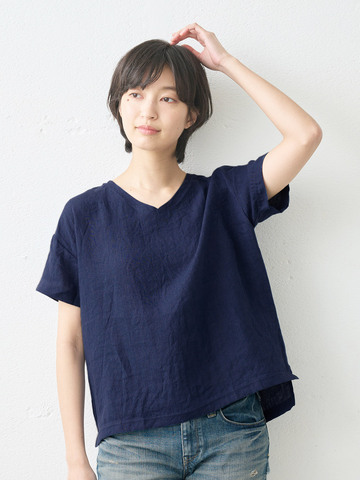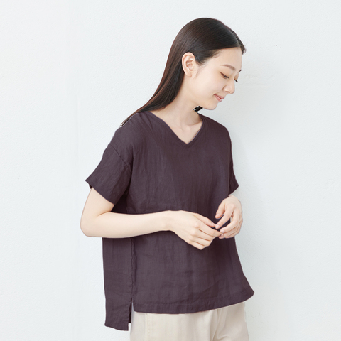 TOKYO BASIC|40番手フレンチリネン100% リブ使いブラウス|リネンブラウス