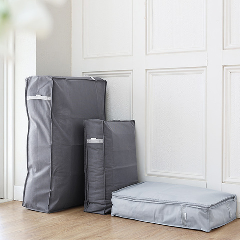 来客用の寝具一式や、オフシーズンの羽毛布団などの収納に。横置きはもちろん縦置きもできて、クローゼットのすき間収納が叶います。