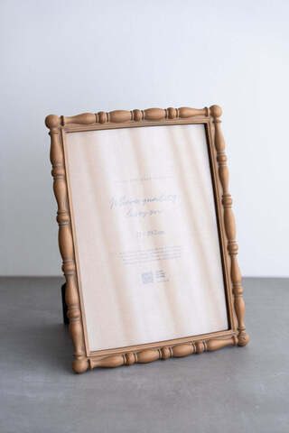 ろくろ加工のような滑らかな曲線が連なる装飾が印象的なフォトフレーム。丸みとくびれを繰り返すスピンドルデザインが、空間にやわらかな立体感とクラシカルな表情を添えます。
