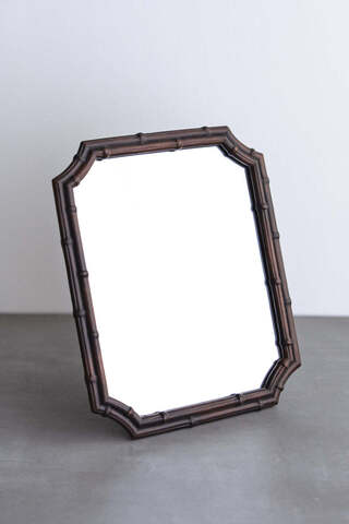 やわらかな曲線で四隅を切り欠いたフォルムに、竹の節のようなアクセントを添えたミラー。丸みを帯びながらも輪郭にほどよいシャープさがあり、陰影を感じさせる立体的な造形が印象的です。