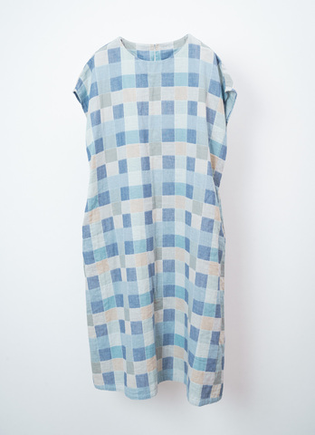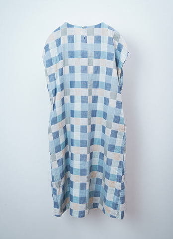 身幅はゆったりとしていて、風をふわりと通す心地よさ。フレンチスリーブのデザインは、暑い季節には一枚で軽やかに、少し涼しくなってきたらタートルネックなどとの重ね着も楽しめます。さりげなく便利な両ポケット付きで、後ろ姿には小さな貝ボタンのなみだあき。細部までやさしさが詰まっています。