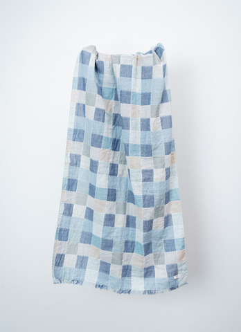 一枚あるだけで、装いの幅がぐっと広がるストールです。八木さんが得意とするガラスの柄組みや色使いをモチーフに、播州で丁寧に織り上げたオリジナルのドビー織のダブルガーゼ。ふっくらやわらかく、光をやさしく含む生地は、涼やかで繊細なガラスのきらめきを感じさせてくれます。
