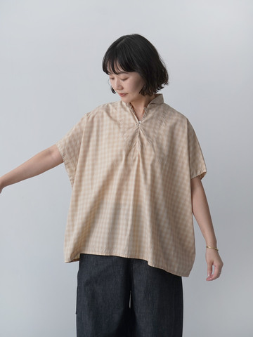 身幅の広さに対して着丈は長すぎず、様々なボトムと相性良く着ることができます。袖の切替がないため、身体に沿って落ちる肩のラインが柔らかく優しい印象に。