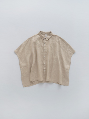 身体が泳ぐようなワイドシルエットで、風の通りが心地よいリネンシャツ。身幅の広さに加えバックにはタックが入り、さらにゆとりが生まれています。ゆったりとした着心地ですが、袖を通すと身幅の落ち感があり、すっきりとした印象で着ることができます。
