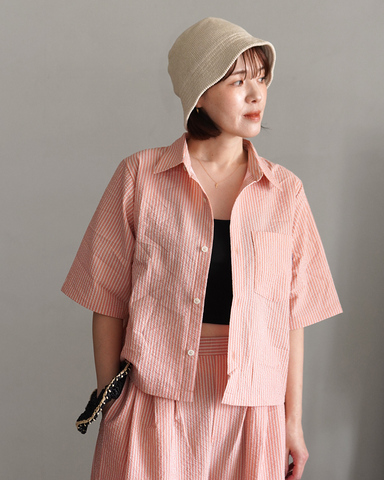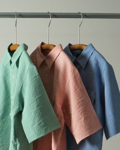 暑い季節でも快適に過ごせる、軽やかさと上品さを兼ね備えた一枚。表面に凹凸のあるシアサッカー素材が、肌離れの良さと清涼感を演出します。