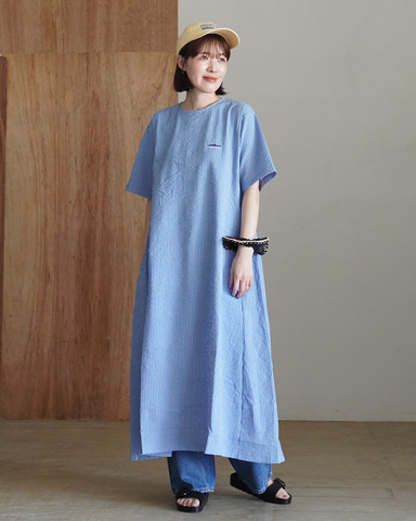 「 シアサッカーストライプ ワンピース 」