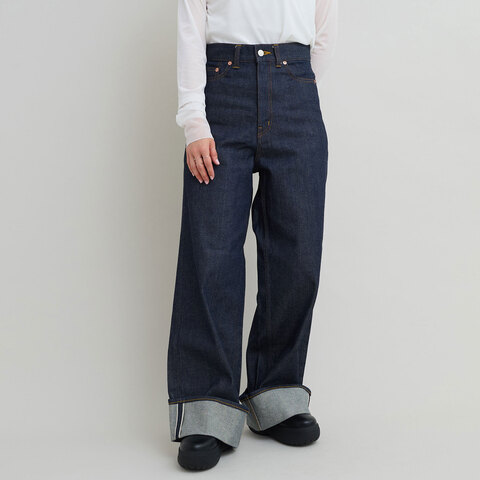 ※生デニムは湿度で伸び縮みすることがございます。また、水に通すと縮みます。予めご了承ください。