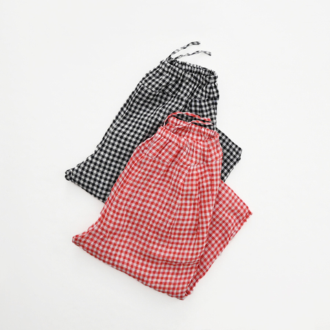 こちらは、ギンガムチェック・ヨークパンツ。生地は、あざやかなギンガムチェック柄が目を惹くVeritecoeurオリジナル素材です。太番手のリネン糸を甘く平織りにした生地は洗いを掛けることで風合い良く、ほんのり透け感のある軽やかで春夏らしいボイル素材に仕上がっています。