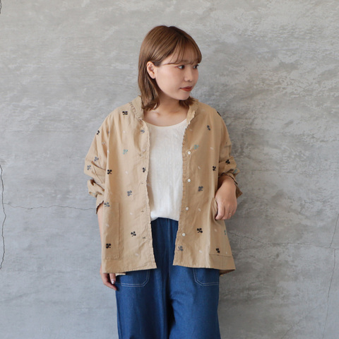 繊細な刺繍がさりげなく華やぎを添える、60ローン3D刺繍 シャツジャケット BEIGE。