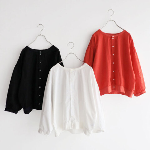poora|リネンブレンド Crew-neck Gather-cuff カーディガン