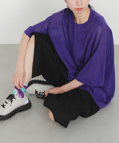LinenYa|モックネック5分袖ニット(AS602)