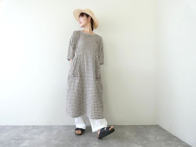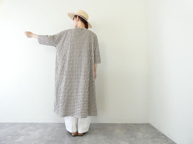 快晴堂|初秋まで着られるリネン 丸衿タブ半袖ワンピース(52OP-30)