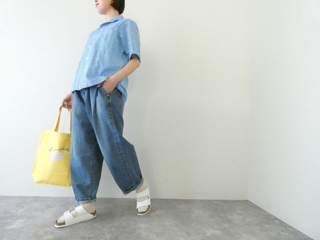 快晴堂|Girl's マルチシーズン/6オンスデニム スタンド衿半袖ギャザーシャツ(62S-15)かいせいどう