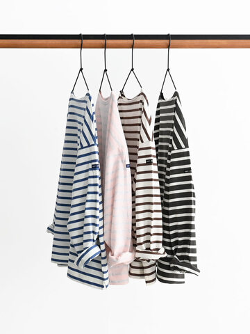 BLUE LAKE MARKET|【WOODY別注カラー】アメリカンドライ天竺ボーダーII 七分袖ヘムラウンドボーダーTee Tシャツ トップス クルーネック b-522018