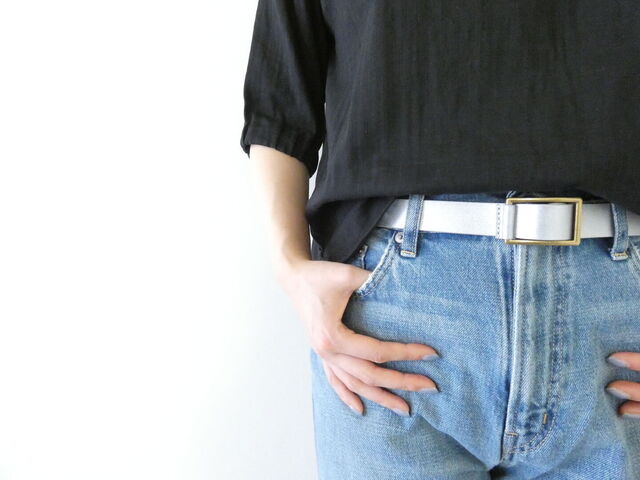 Shinzone|レンダー レザー ベルト 牛革 細ベルト スクエアバックル 15AMSIT55 シンゾーン