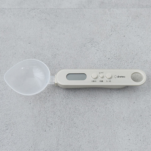 ボタンひとつで単位の切り替えも可能。「ml」と「g」が選べるので、固形物だけでなく液体の計量もできます。