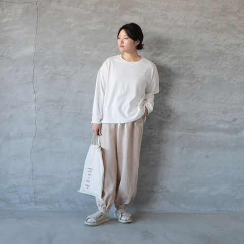 ゆとりのある身幅と肩を落としたリラックス感のあるシルエットで、パンツにもスカートにも好相性。