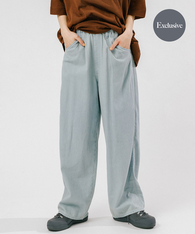 さらさら綿100% リラックスワイドパンツ / ライトデニムパンツ