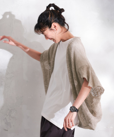 mao made|UVカット リネン クルーネック カーディガン 611113