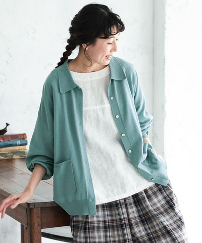 grin|40/2天竺×布帛 ゴードカーディガン【DM便発送可能】