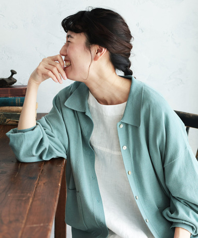 mao made|aranciato別注 UVカット リネン クルーネック カーディガン 992118