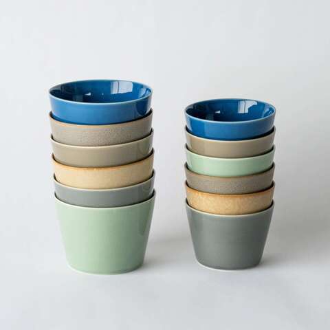 さらりとマットな質感の2色は、釉薬の表情が豊かな仕上がり。量産ながら手作業で仕上げていることもあり、特に風合いの個性が出やすいカラーです。