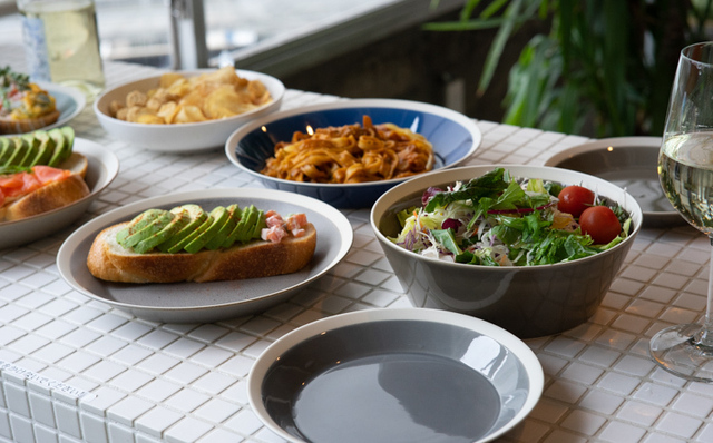 取り皿やケーキ皿にちょうど良い「plate 180」と朝食やオープンサンドにぴったりの「plate 220」は、リムの立ち上がりがなだらか。