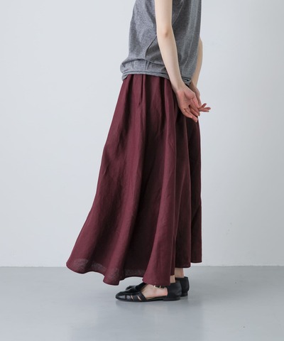 ウエストの高い位置で紐を結んでいただくか、ウエストを一折りすると短い丈感をお楽しみいただけます。