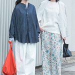 同素材のシャツを合わせてワンピース見えする着こなしもおすすめです。