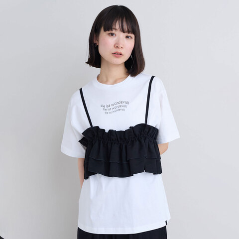 中のコードを寄せて作った2段のギャザーが特徴の1着。