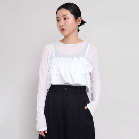 生地の特性を生かし、ボリューム感を楽しめるアイテムに落とし込んでデザインしたビスチェ。