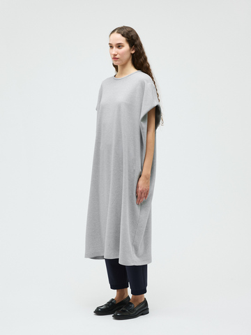 PE素材の裏毛生地を使用したドライフレンチテリーノースリーブロングワンピースです。