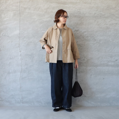 ややゆとりのあるシルエットでインナーを選ばず、季節の変わり目にも重宝します。
