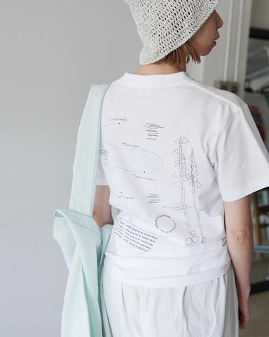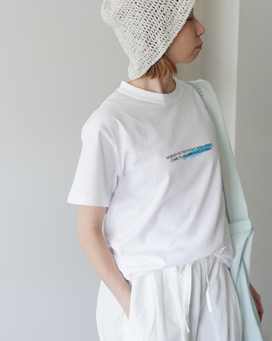 シンプルな白Tに、さりげない物語性と個性を添えた一着です。